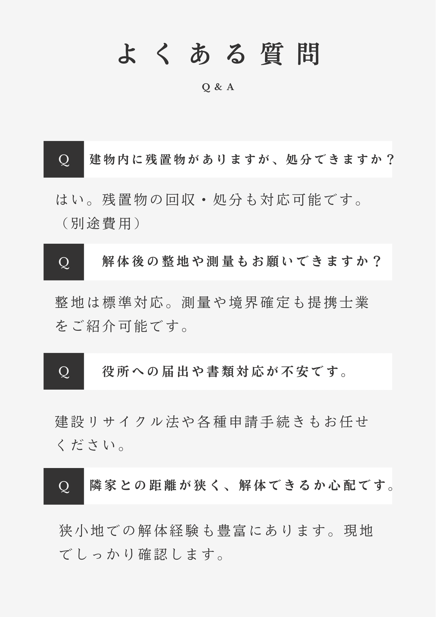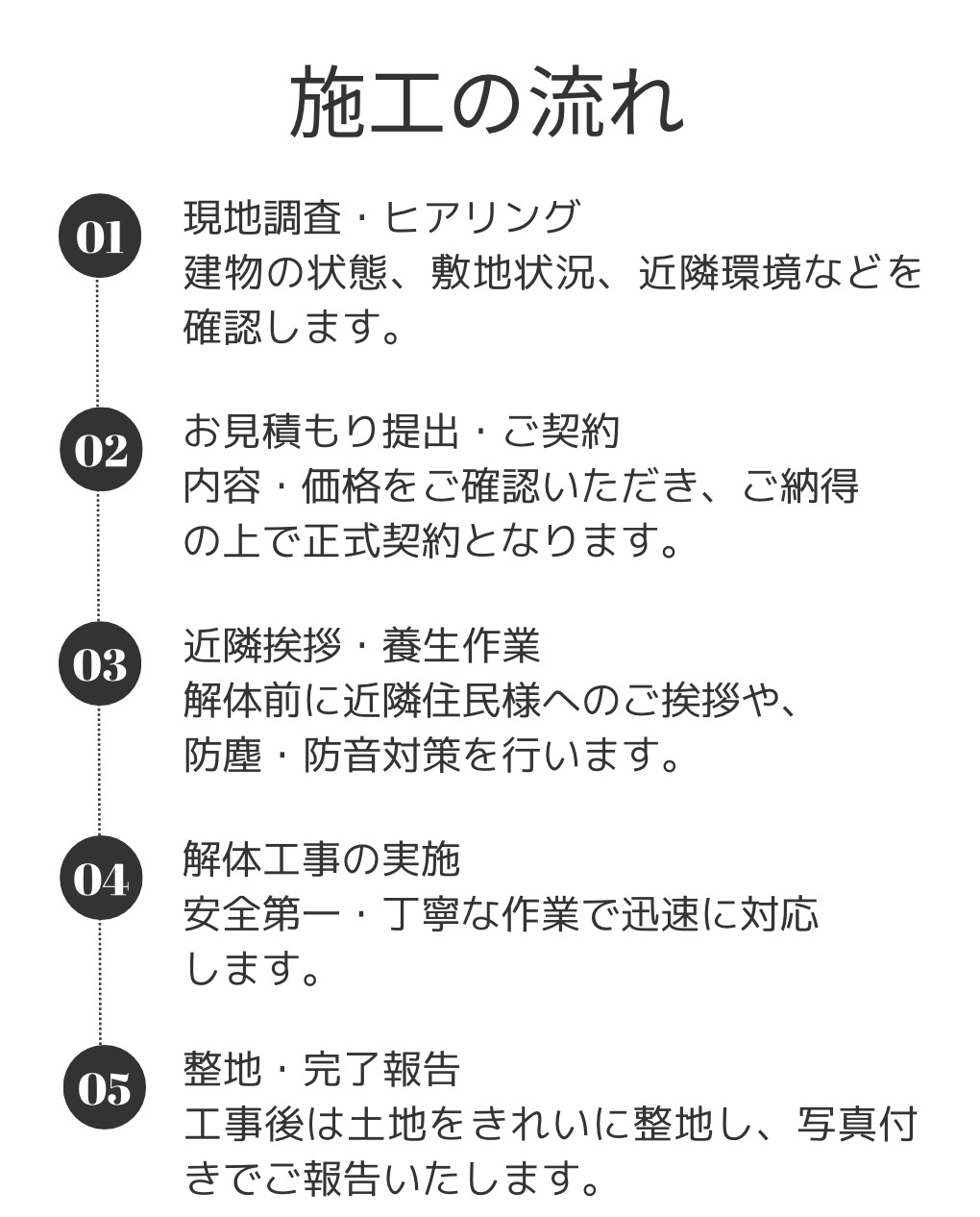 私たちは、数多くの解体実績をもとに、安心と納得のサービスをご提供します。