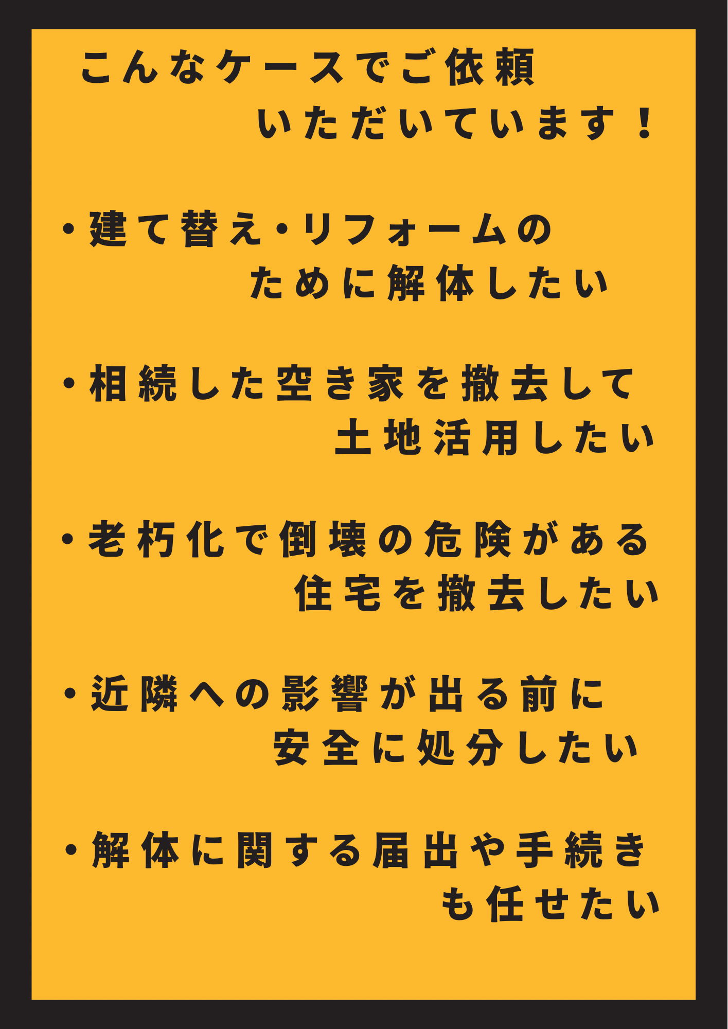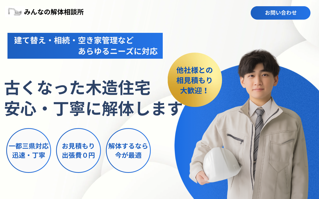 「老朽化して地震が心配」「空き家になった実家をどうにかしたい」「建て替え前にスムーズに解体したい」──そんなお悩み、増えています。